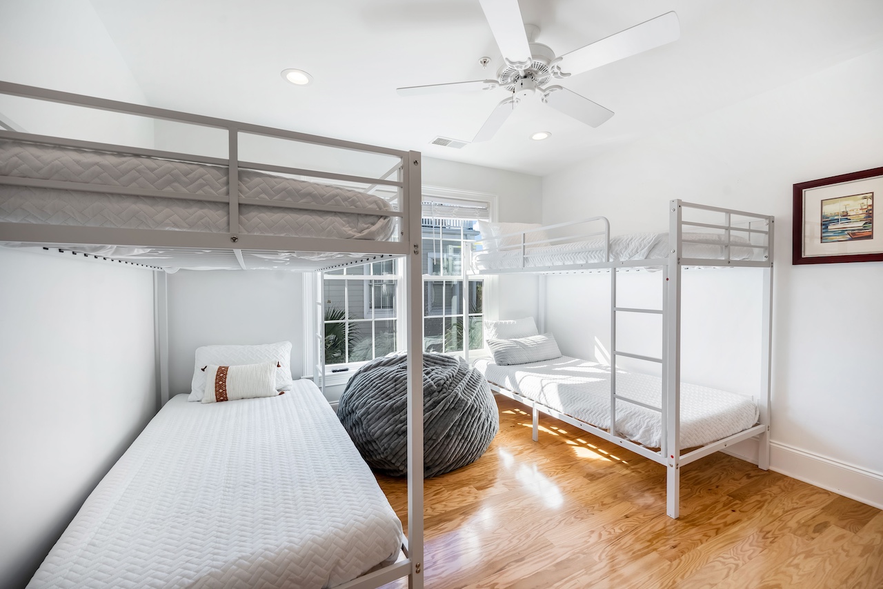 Front Beach Fun offers six well-appointed bedrooms, thoughtfully set up for groups: