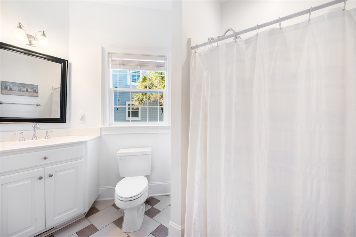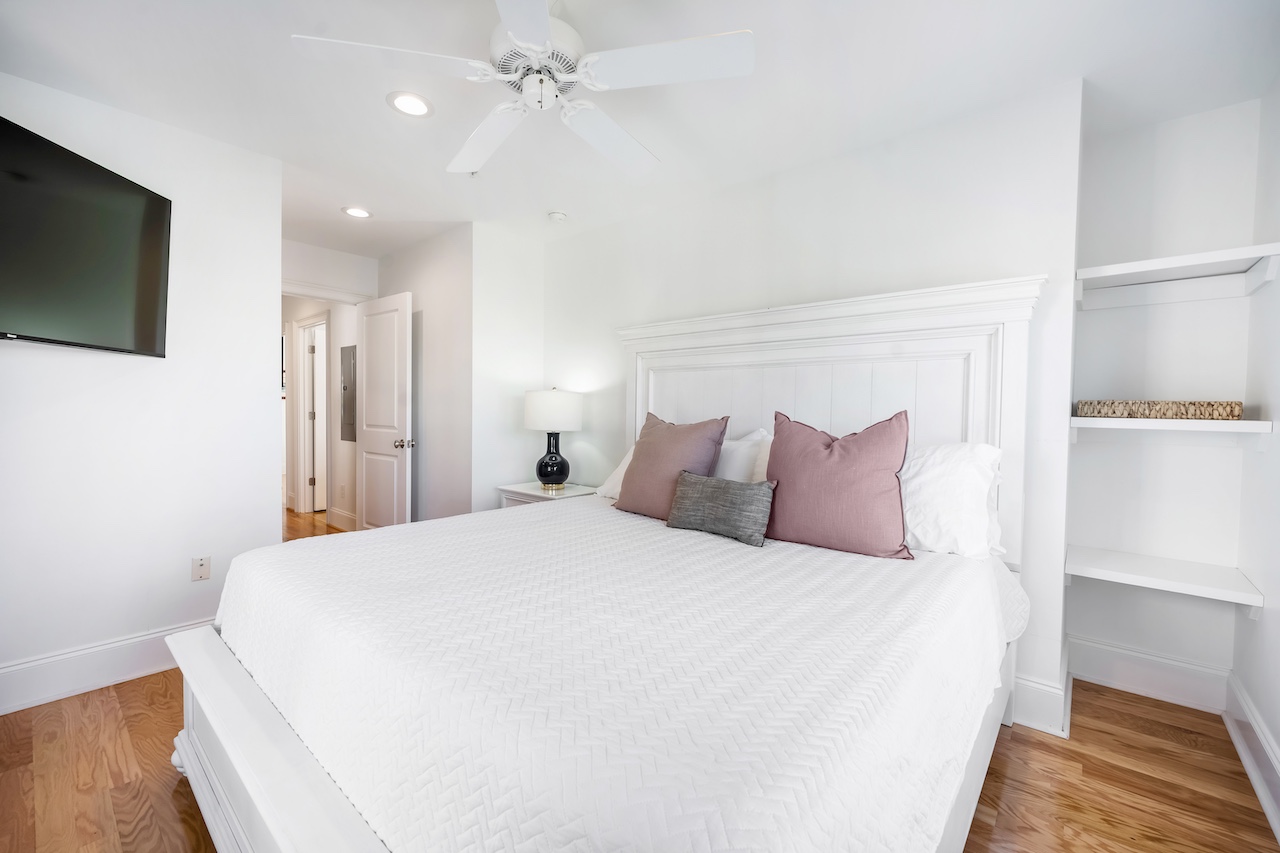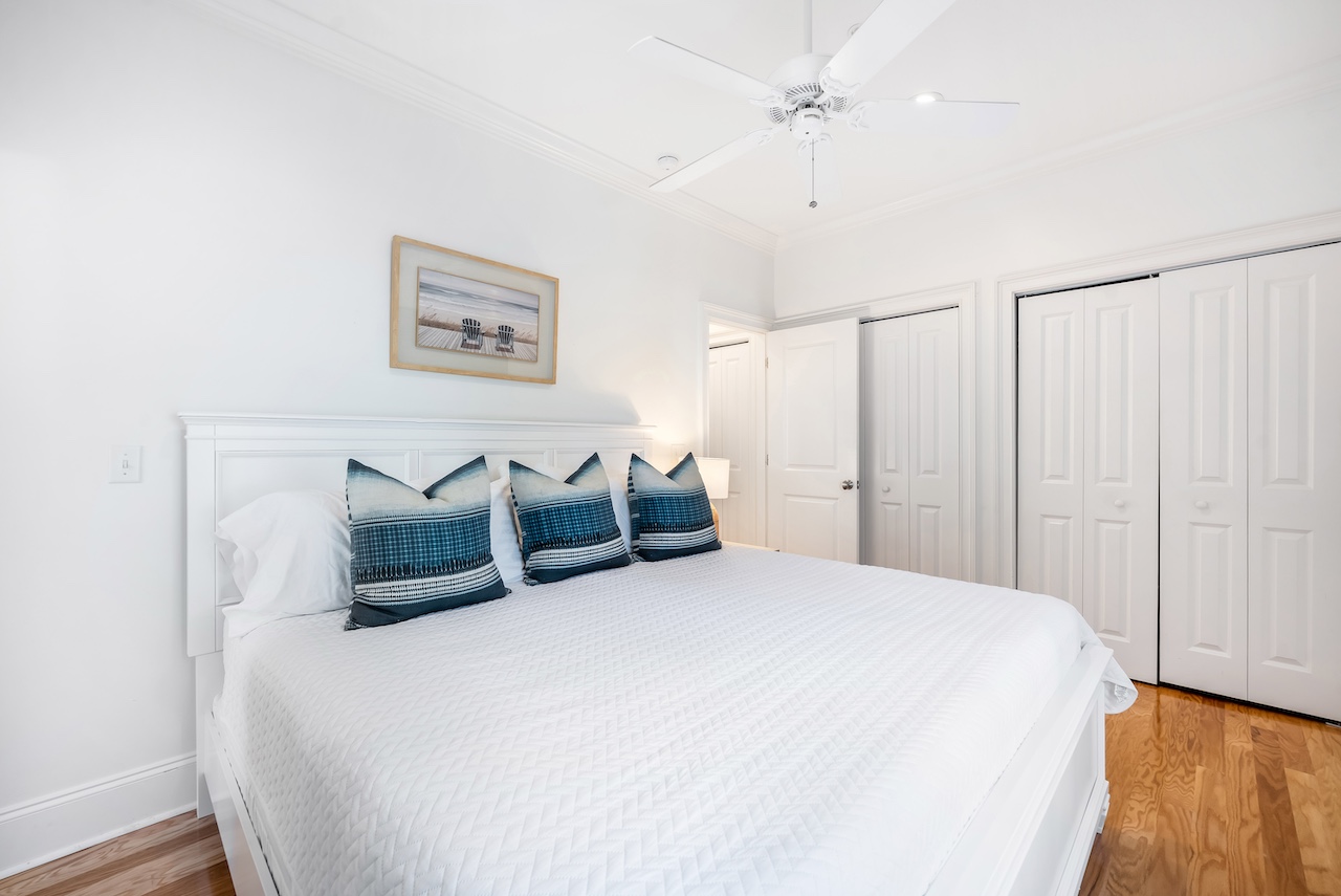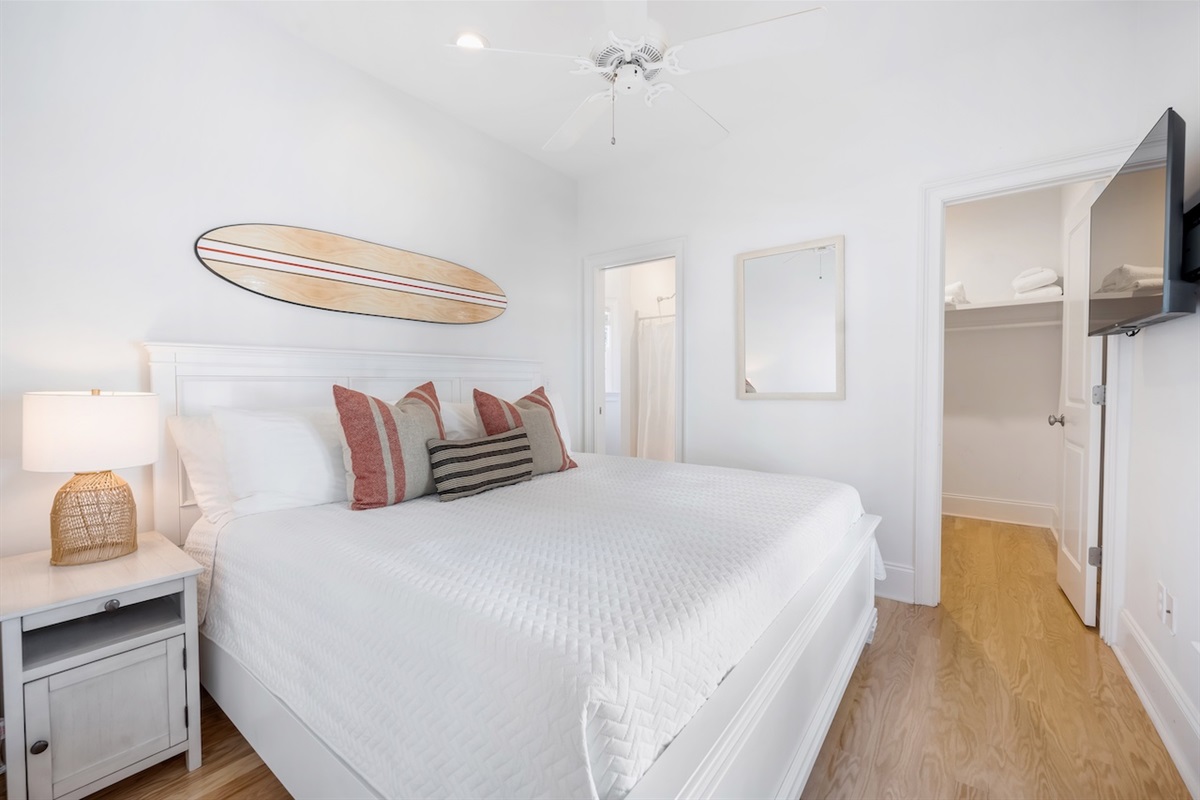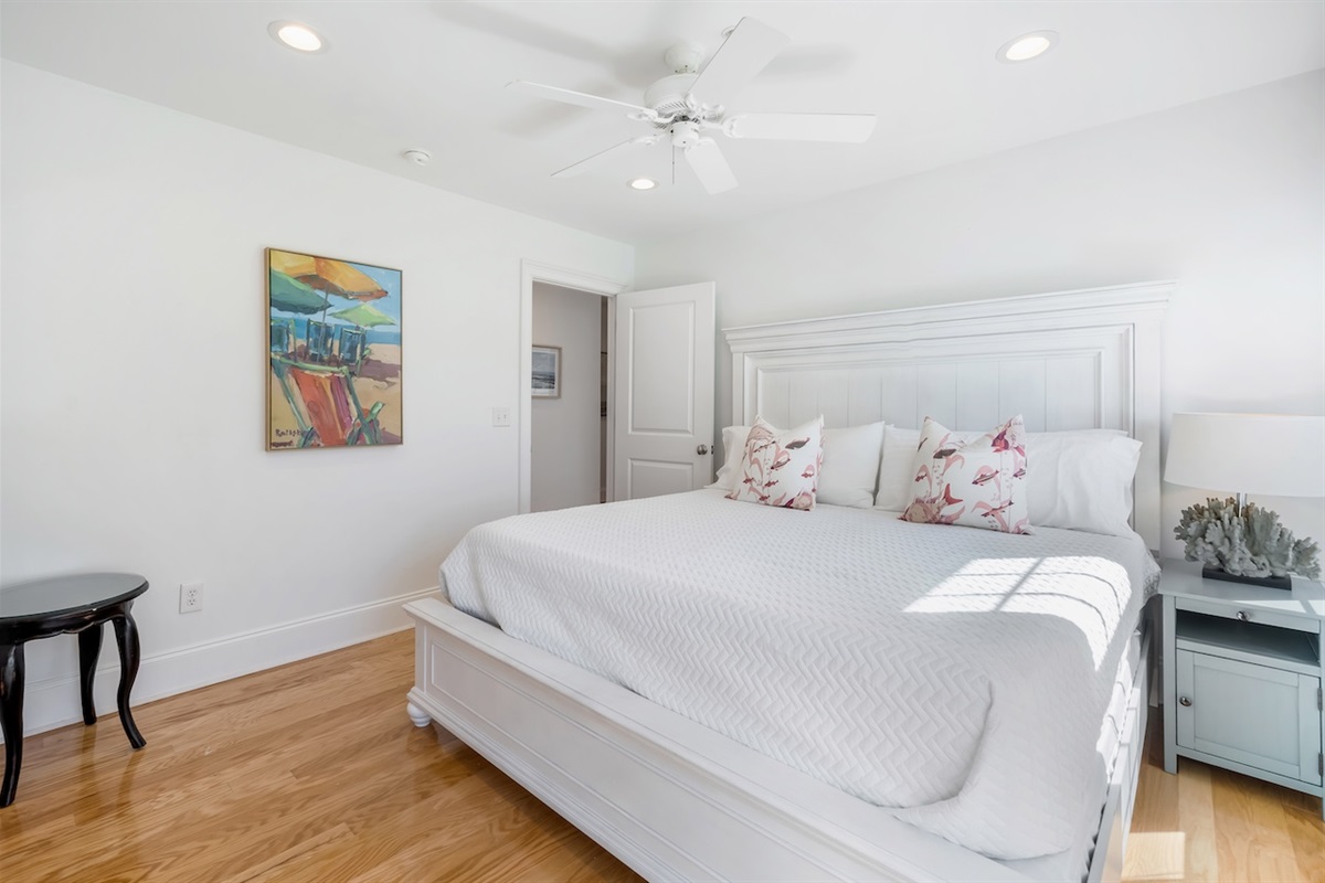 King Bedroom 4 – King bed with easy access to a full hall bath (tub/shower combination).