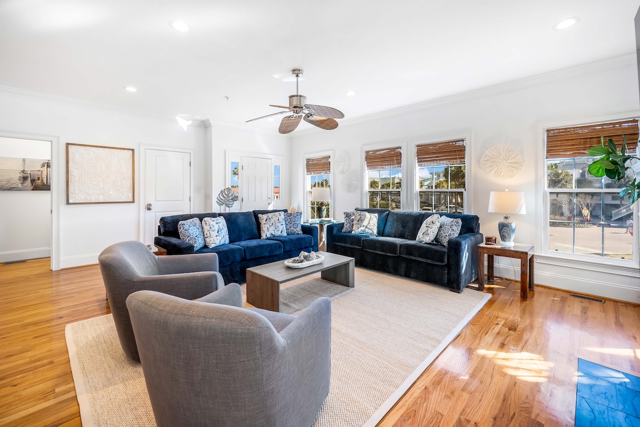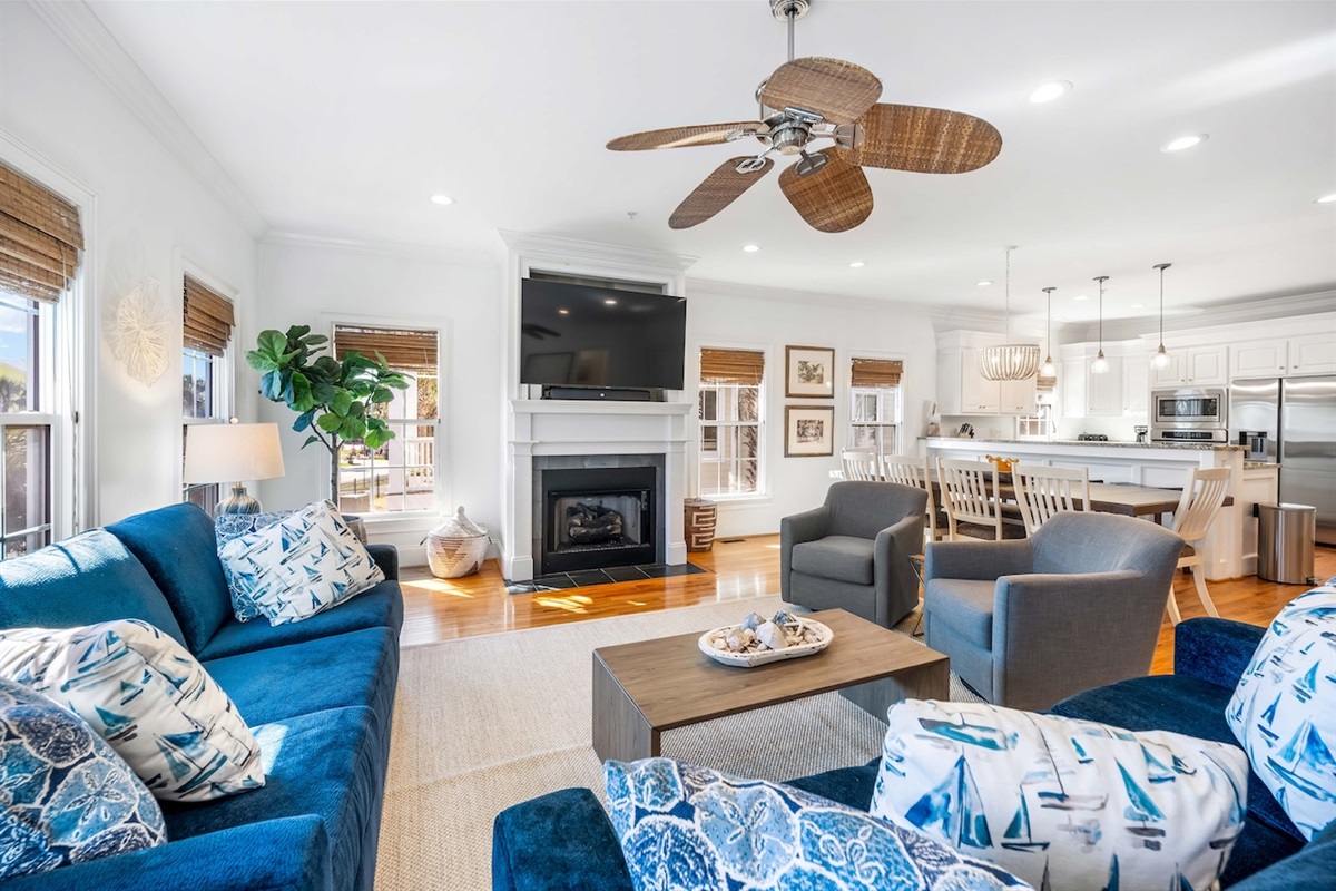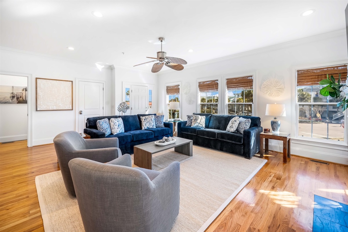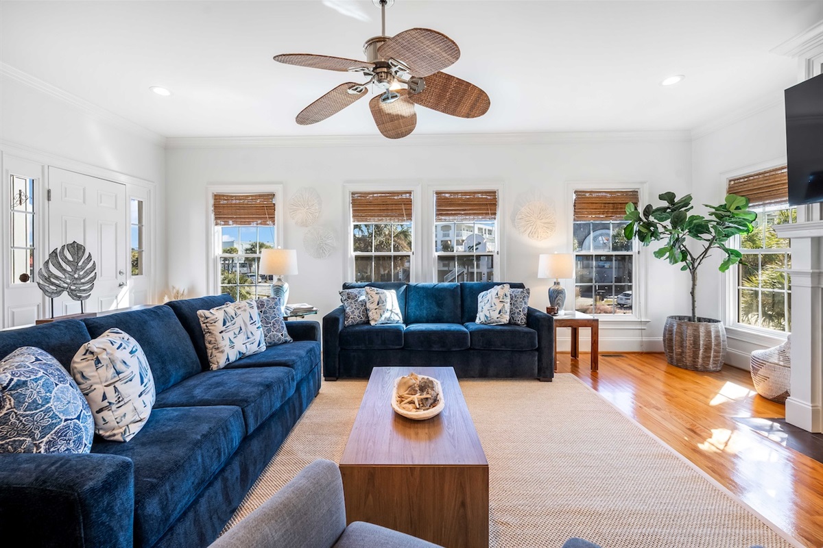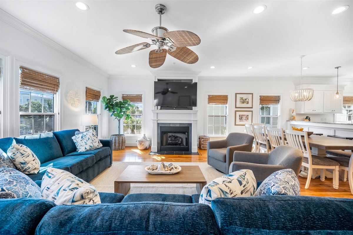 Step into a comfortable coastal retreat designed for easy gathering. The main living areas offer plenty of seating for your group to relax after a day at the beach, with TV/Smart TV entertainment, ceiling fans, and a bright, inviting atmosphere. The layout is ideal for socializing—whether you’re watching a movie, playing games, or planning the next day’s adventures.