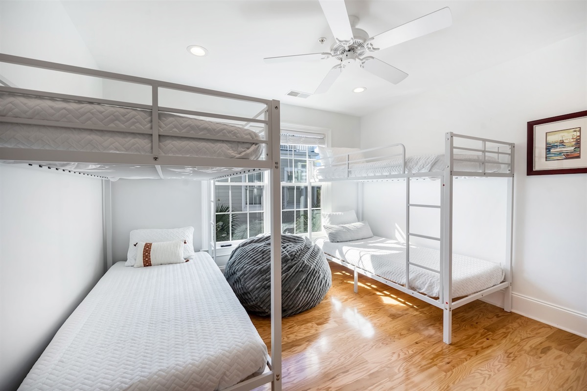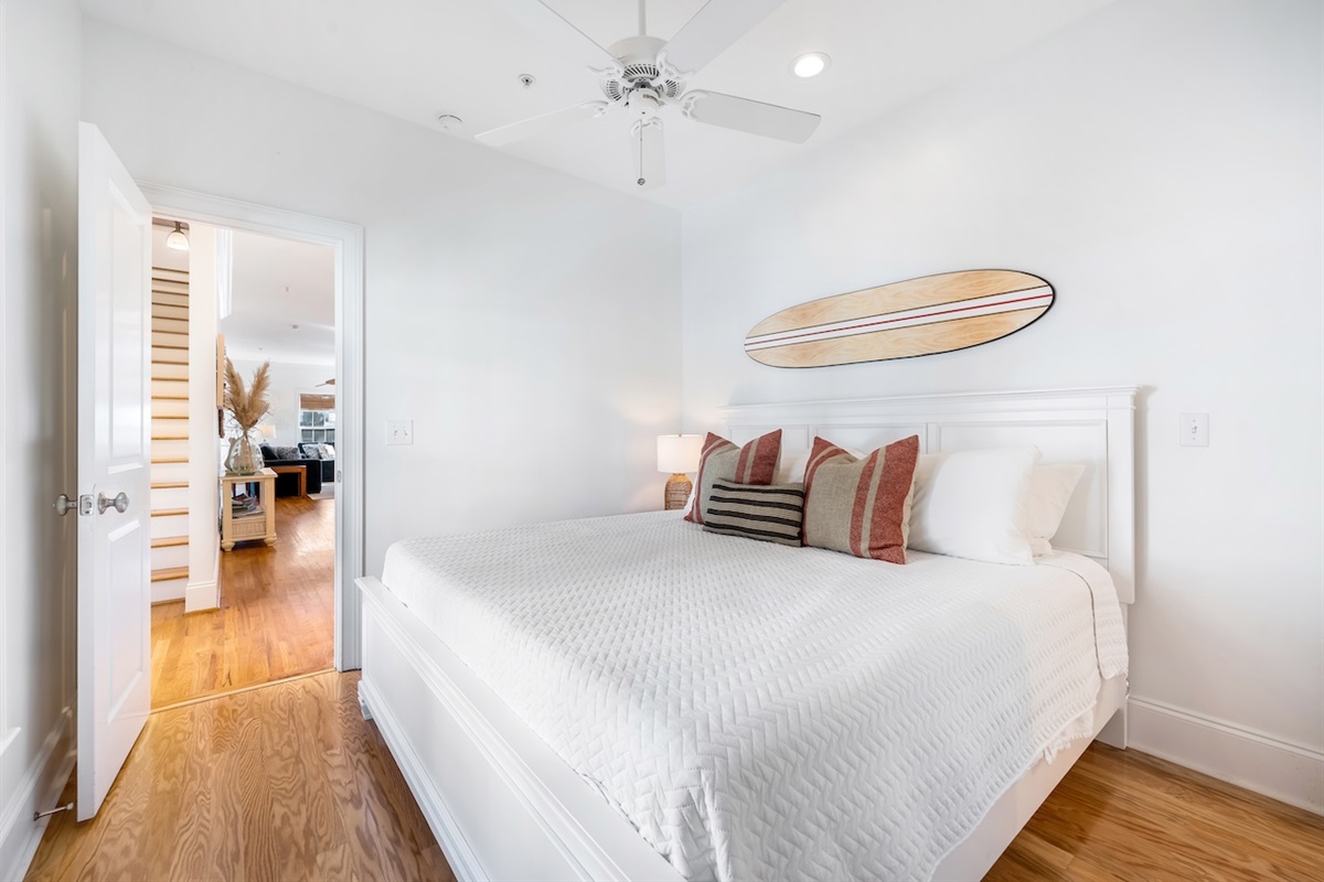 Bunk Room – King bed + queen bed, ideal for families or kids, located near a full bath.