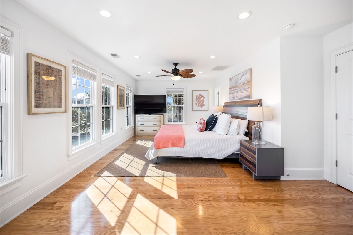 King Bedroom 5 – King bed with access to shared bath.