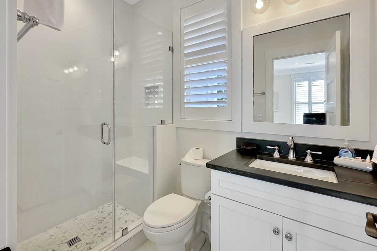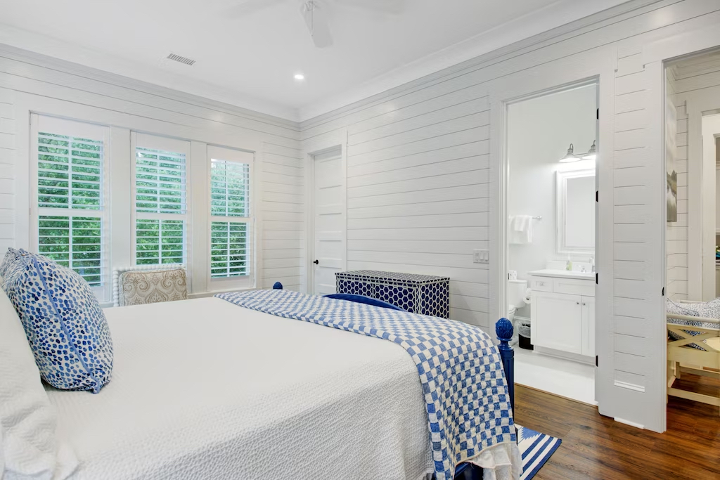 Sleeping up to 14 guests throughout six bedrooms, this residence offers comfort and luxury. The primary suite boasts a king bed, a smart TV, and an en-suite bathroom featuring a freestanding soaking tub and a walk-in shower. The second bedroom includes a king bed and an en-suite bathroom with a walk-in shower. In the third bedroom, you'll find two twin-over-twin bunk beds, accompanied by an adjacent bathroom with a walk-in shower. The fourth bedroom presents a queen bed and an en-suite bathroom with a walk-in shower. The fifth bedroom offers ample space with a queen bed and a walk-in shower. The sixth bedroom also offers a queen bed. An additional guest bathroom includes a walk-in shower.